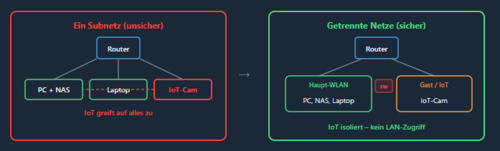 Wenn alle Geräte im selben Subnetz sind, kann ein kompromittiertes IoT-Gerät auf alle anderen zugreifen.