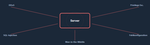 | Privilegien-Eskalation | Angreifer erlangt erhoehte Rechte auf dem Server | Least-Privilege-Prinzip, regelmaessige Patches |